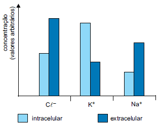Analise o gráfico que ilustra as concentrações de sais minerais nos meios internos e externos de algumas células de um animal.