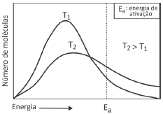 Suponha que a figura se refira à energia das moléculas de vitamina C presentes no suco, cujo processo de degradação está sendo estudado nas temperaturas de 35 ºC e de 45 ºC. Na figura, está representada, também, a energia de ativação desse processo de degradação.