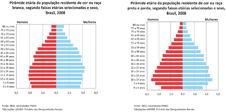 c) Usando dados da comparação entre as pirâmides etárias, explique por que o texto afirma que “o fator previdenciário é um fator de discriminação racial no Brasil”.