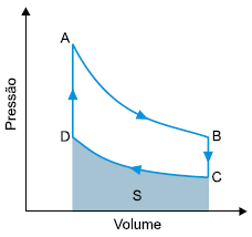Um motor funciona obedecendo ao ciclo de Stirling, no qual um gás ideal é submetido a duas transformações isotérmicas, AB e CD, e a duas transformações isovolumétricas, BC e DA, como mostra a figura.