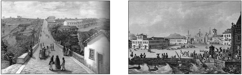 Esses dois quadros, pintados em datas muito próximas, indicam a placidez de São Paulo (1827) e a agitação do Rio de Janeiro (1832) nessa época. Considerando os contextos sugeridos pelas duas pinturas responda: