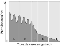 b) A figura representa a pressão do sangue em seu percurso ao longo do sistema circulatório da baleia. As letras A, B, C, D e E correspondem a diferentes vasos sanguíneos.
