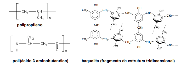 Abaixo são dadas as estruturas moleculares de alguns polímeros.