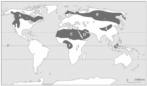 b) Dentre as áreas demarcadas no mapa abaixo, indique, com as respectivas letras, duas áreas nas quais é possível encontrar, atualmente, florestas com as mesmas características daquela descrita no texto.