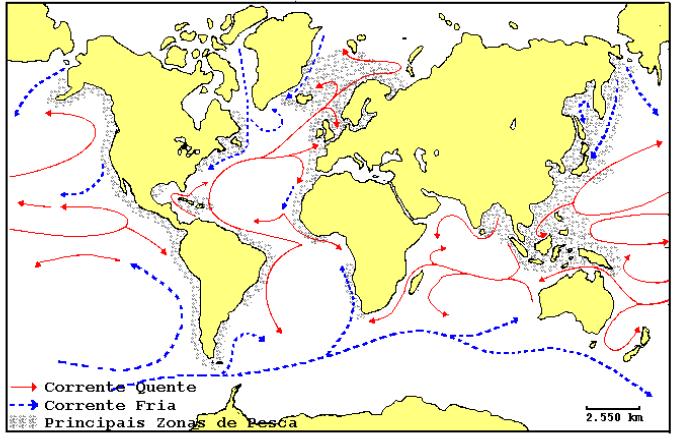 A maior ou menor piscosidade dos mares depende de alguns fatores, tais como: a trajetória das correntes marítimas, a distância da costa e a profundidade e temperatura dos mares.