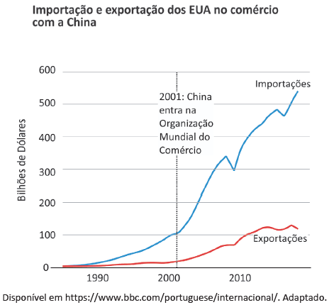 b) Utilizando elementos do gráfico, caracterize a relação comercial entre os EUA e a China.