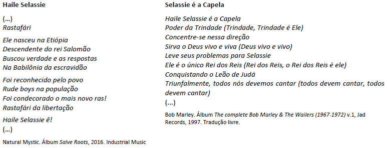 As letras das canções abaixo fazem menção ao rei Haile Selassie (1892-1975), que governou a Etiópia entre 1916 e 1930, como regente, e entre 1930 e 1974, como imperador.