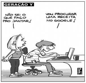 Para a Geração Y, a tecnologia já se tornou parte do cotidiano. CHARGE: Fernando Bastos.