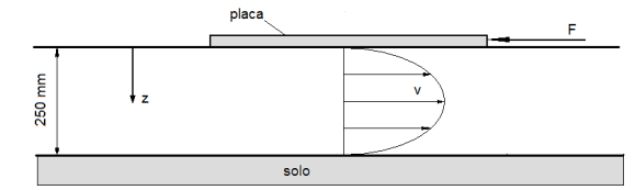 Um fluido newtoniano escoa entre uma placa e o solo, conforme a figura a seguir: