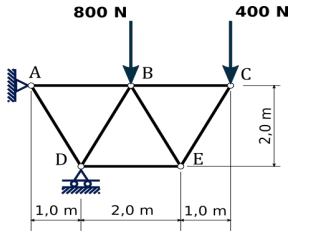 b) Determine os esforços atuantes nas barras AB e AD da estrutura mostrada na figura. Considerar as barras e uniões ideais.