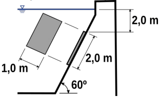 a) Determine o módulo e o ponto de aplicação da força devida à água atuante sobre a comporta.