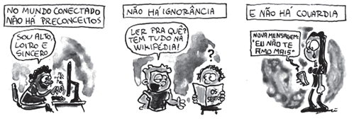 Os textos presentes na prova discutem, cada um a seu modo, o acesso à produção de conhecimento. No texto I, a autor aborda a importância da vacinação, considerando as opiniões que mostram resistência. No texto II, o autor relata a história de personagem que manteve sua atividade de registro e produção de conhecimento. Já no texto III, a tirinha destaca comportamentos construídos no ambiente conectado. Com base nos textos e seus conhecimentos, elabore um texto argumentativo que responda à seguinte questão: É impossível impor restrições à divulgação de opiniões ofensivas nas redes sociais?
