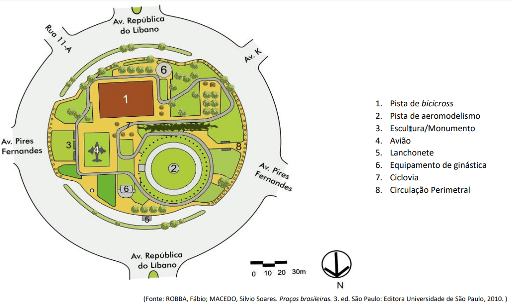 Observe a planta baixa e a legenda, que representam a configuração dessa Praça em 1996.