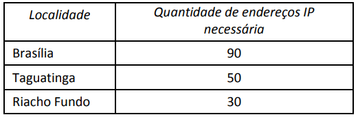 8. A distribuição da quantidade de endereços IP necessária para cada localidade é: