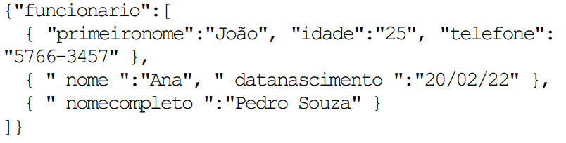 b) Os bancos de dados NoSQL são usados para armazenar dados que possuem uma estrutura diferente do modelo relacional que utiliza SQL. Qual é o tipo de banco de dados NoSQL que deve ser usado para armazenar o seguinte conjunto de dados (dataset) no formato JSON?