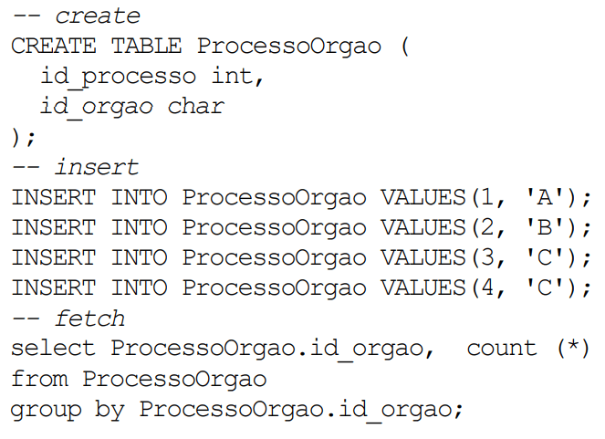 - Para implementar um relatório do SisAP, o programador gerou o seguinte script SQL no banco de dados PostgreSQL.