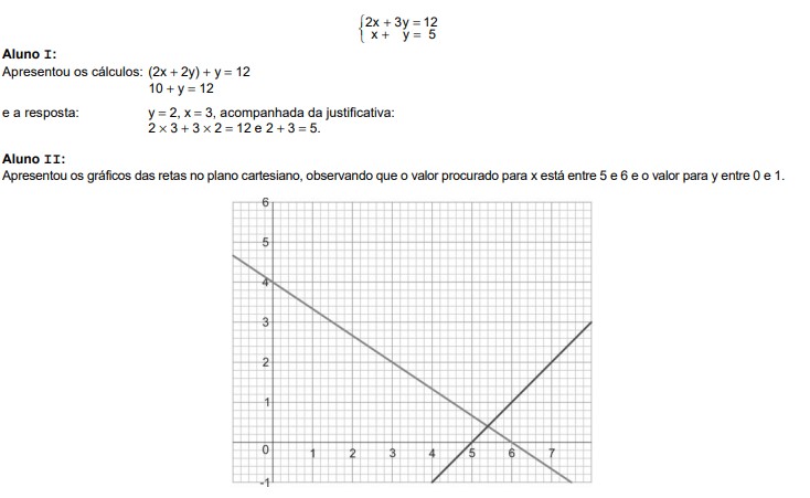 Para a resolução do problema, dois alunos apresentaram diferentes encaminhamentos a partir do seguinte sistema de equações: