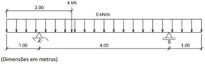 A figura a seguir apresenta uma viga biapoiada com dois tramos em balanço.