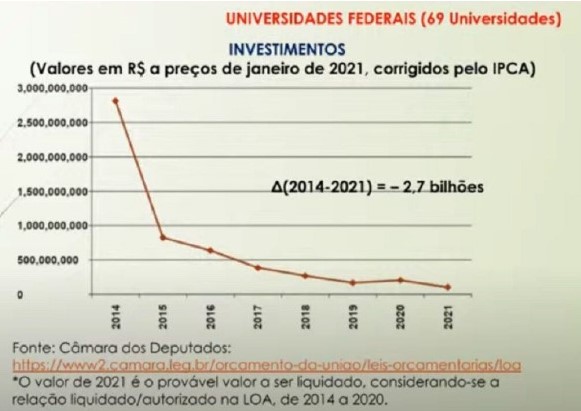 Disponível em: https://g1.globo.com/educacao/noticia/2020/08/23/universidades-federais-perdem-em-10-anos-73percent-da-verba-para-construirlaboratorios-