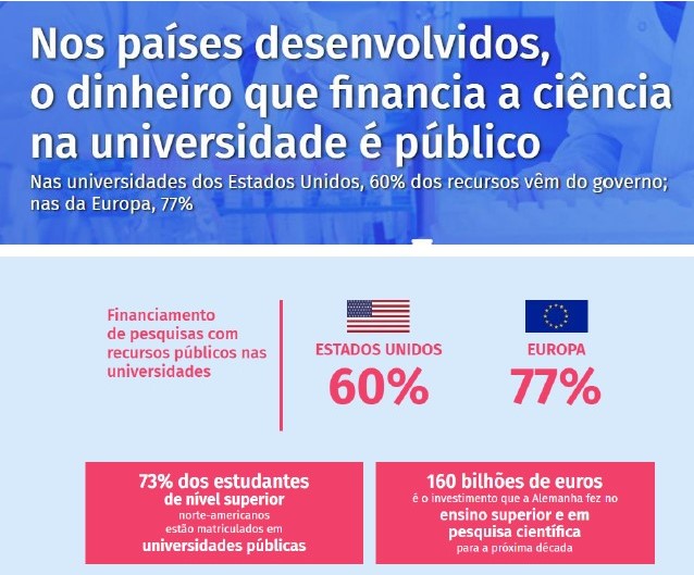 Disponível em: https://jornal.usp.br/ciencias/nos-paises-desenvolvidos-o-dinheiro-que-financia-a-ciencia-e-publico/ Acesso em: 09 de novembro de
