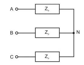 A figura acima ilustra um circuito trifásico, com uma carga equilibrada, tendo em cada fase uma impedância Zn , cujo módulo é igual a Z e a fase, 2. A carga apresenta uma configuração estrela (Y). A excitação da carga é do tipo senoidal, trifásica, com sequência de fase positiva (ou ABC), e pode apresentar-se na configuração estrela (Y) ou triângulo ()). A análise das potências no circuito está relacionada às formas de representação (Y!)) da fonte trifásica e da representação da carga, por meio das tensões de fase ou de linha e das correntes de fase ou de linha.