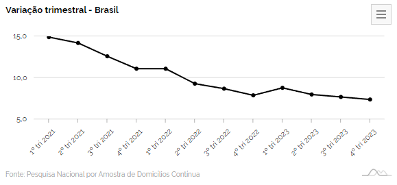 O desemprego se refere às pessoas com idade para trabalhar que não estão trabalhando, mas estão disponíveis e tentam encontrar trabalho. É calculado pela Pesquisa Nacional por Amostra de Domicílios Contínua – PNAD Contínua.