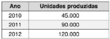Sabe-se que a empresa produziu com o equipamento, nos anos de 2010 até 31/12/2012, as seguintes quantidades: