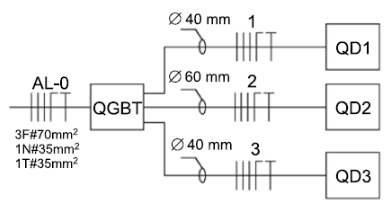 A instalação elétrica predial de uma edificação comercial é atendida em tensão secundária de distribuição em um padrão trifásico a 4 fios com valor nominal 220/127 V. O diagrama unifilar dos quadros de distribuição da instalação é mostrado na figura a seguir, onde AL-0 é o alimentador proveniente do quadro de medição.