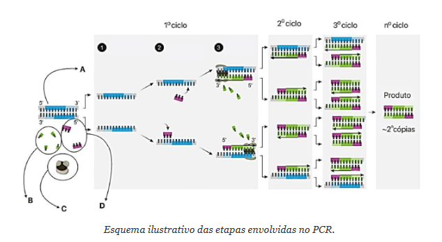 Fonte: Figura adaptada de: https://en.wikipedia.org/wiki/Polymerase_chain_reaction