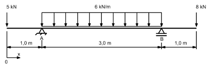 B) Gere uma equação, em função da coordenada x indicada, que expresse os momentos fletores ao longo da viga.