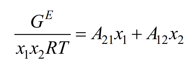 A descrição do comportamento de soluções não ideais pode ser feita por modelos de energia livre de Gibbs em excesso (G^E). Um dos modelos mais empregados nesse contexto é o modelo de Margules, onde a energia livre de Gibbs em excesso em uma mistura binária é dada pela seguinte expressão: