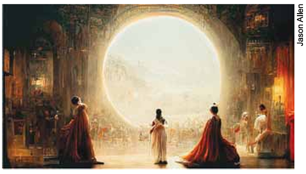 Em setembro de 2022, Jason Allen ganhou o primeiro prêmio na Feira de Arte do Colorado. Allen não criou a obra de arte de modo tradicional. Em vez disso, inseriu prompts textuais em uma ferramenta de IA que, então, produziu a obra em questão, como uma imagem digital única. As ferramentas de IA “vasculham” a internet em busca de imagens que são categorizadas. Quando um criador insere no software prompts textuais que descrevem o tipo de imagem que deseja, a IA os transforma em uma imagem nova e única, nunca antes vista, sem elementos diretamente copiados de imagens preexistentes, mas que inclui o estilo, a atmosfera e o conteúdo solicitados pelo prompt.