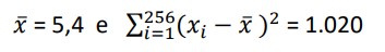 Para testar H0: μ ≤ 5 versus H1: μ > 5, em que μ é a média de uma variável aleatória populacional suposta normalmente distribuída, uma amostra aleatória simples de tamanho 256 foi observada e revelou os seguintes dados: