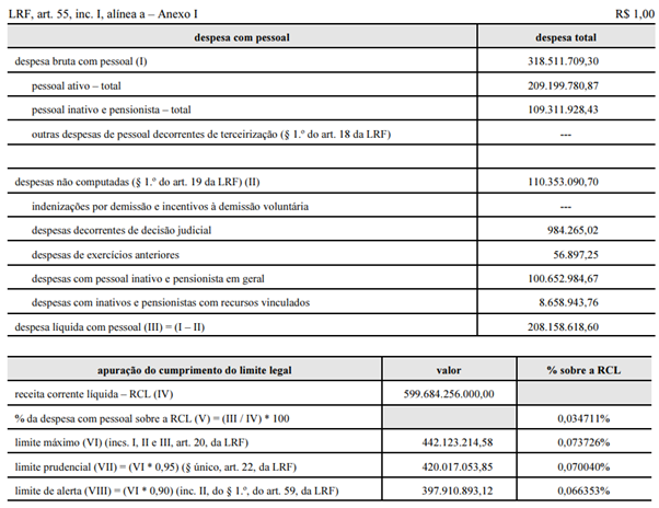 Demonstrativo da Despesa com Pessoal