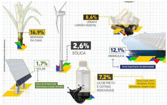 Adaptado de: https://agenciagov.ebc.com.br/noticias/202401/dia-da-energia-limpa-brasil-e-referencia-em-energia-renovavel-e-sustentavel-na-america-latina. Acesso em: 09 ago. 2024.