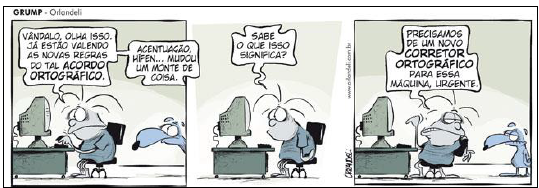 (Disponível em: https://tocadocuty.wordpress.com.acordo-ortografico-em-quadrinhos/. Acesso em: agosto de 2024.)