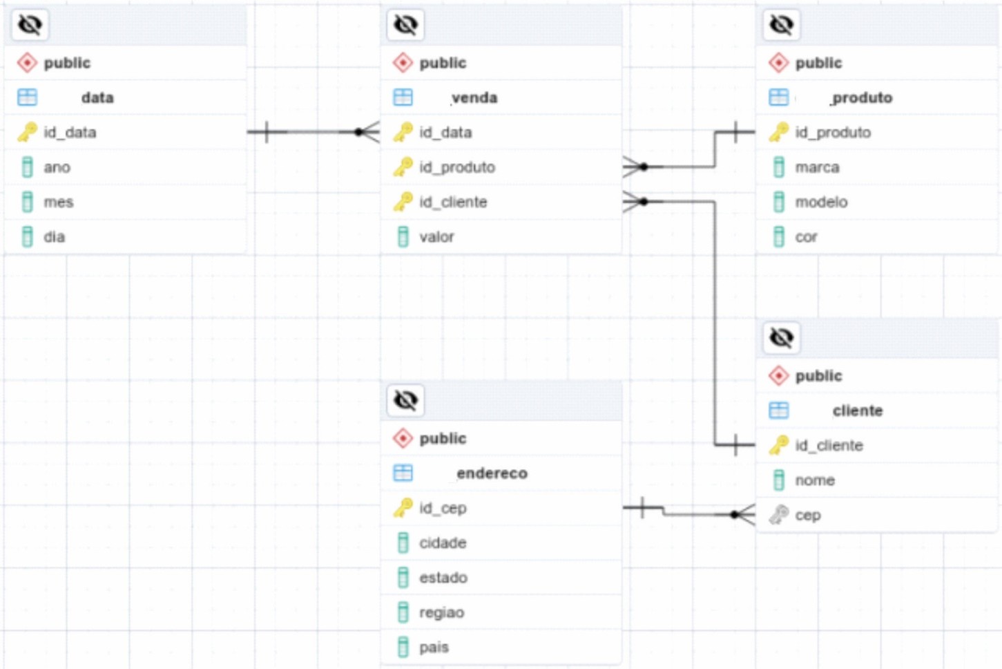 2. Os conceitos de tabela fato e de tabela dimensão e as classificações de cada uma das tabelas indicadas na figura [valor: 4,75 pontos].