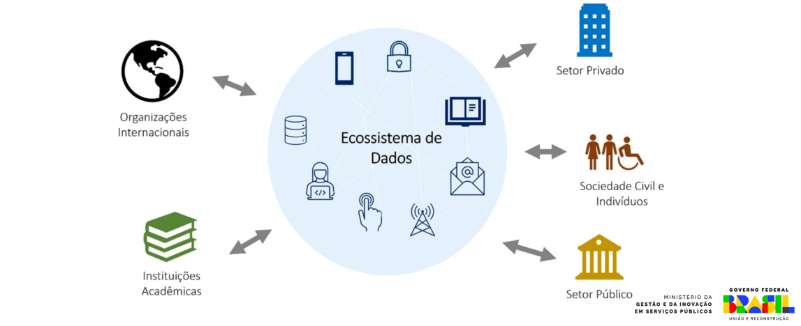 Segundo o Relatório Dados para uma vida melhor, publicado em 2021 pelo Banco Mundial, o Ecossistema de Governança de Dados de uma nação é a definição da abordagem de Governança de Dados que tem um papel central para o governo (órgãos, entidades, autarquias e fundações do poder executivo federal, órgãos dos poderes legislativo e judiciário, órgãos públicos dos estados e municípios), mas que pressupõe a atuação de entidades da sociedade civil e cidadãos, setor privado, instituições acadêmicas e organizações internacionais.
