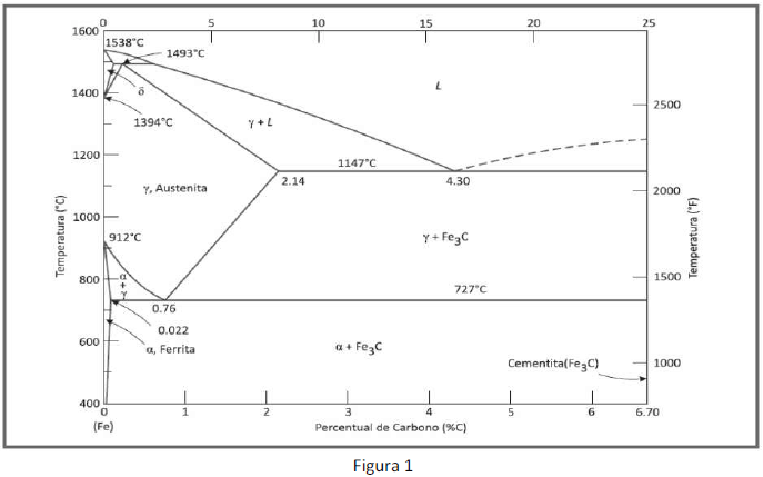 Um técnico de laboratório industrial necessita especificar um material (aço) que será utilizado para fabricação de uma câmara para ensaio de estanqueidade de fachadas em laboratório. De acordo com o diagrama de equilíbrio Ferro Carbono a seguir (figura 1), especifique esse material, sabendo-se que o material deverá ser um Aço doce que apresente uma média resistência mecânica. A especificação deve seguir as seguintes etapas: