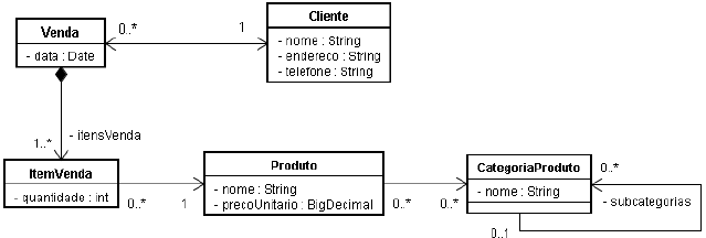 Considere o diagrama de classes na notação da UML apresentado abaixo. Utilizando a linguagem Java, apresente a implementação da estrutura das classes “venda” e “cliente” correspondente ao diagrama.