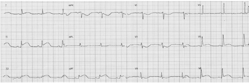 Com base na história clínica, nos achados do exame físico e do ECG desse paciente, responda aos seguintes itens: