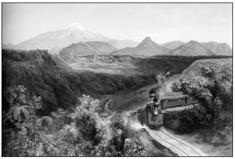 Esse quadro, do pintor mexicano José Maria Velasco, pode ser visto como um dos símbolos da modernização da economia da América espanhola no último quartel do século XIX. Sobre tal tema, responda: