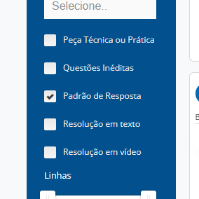 Para filtrar as questões que possuem padrão de resposta, bastar marcar no filtro a opção “Padrão de Resposta”, conforme imagem abaixo: