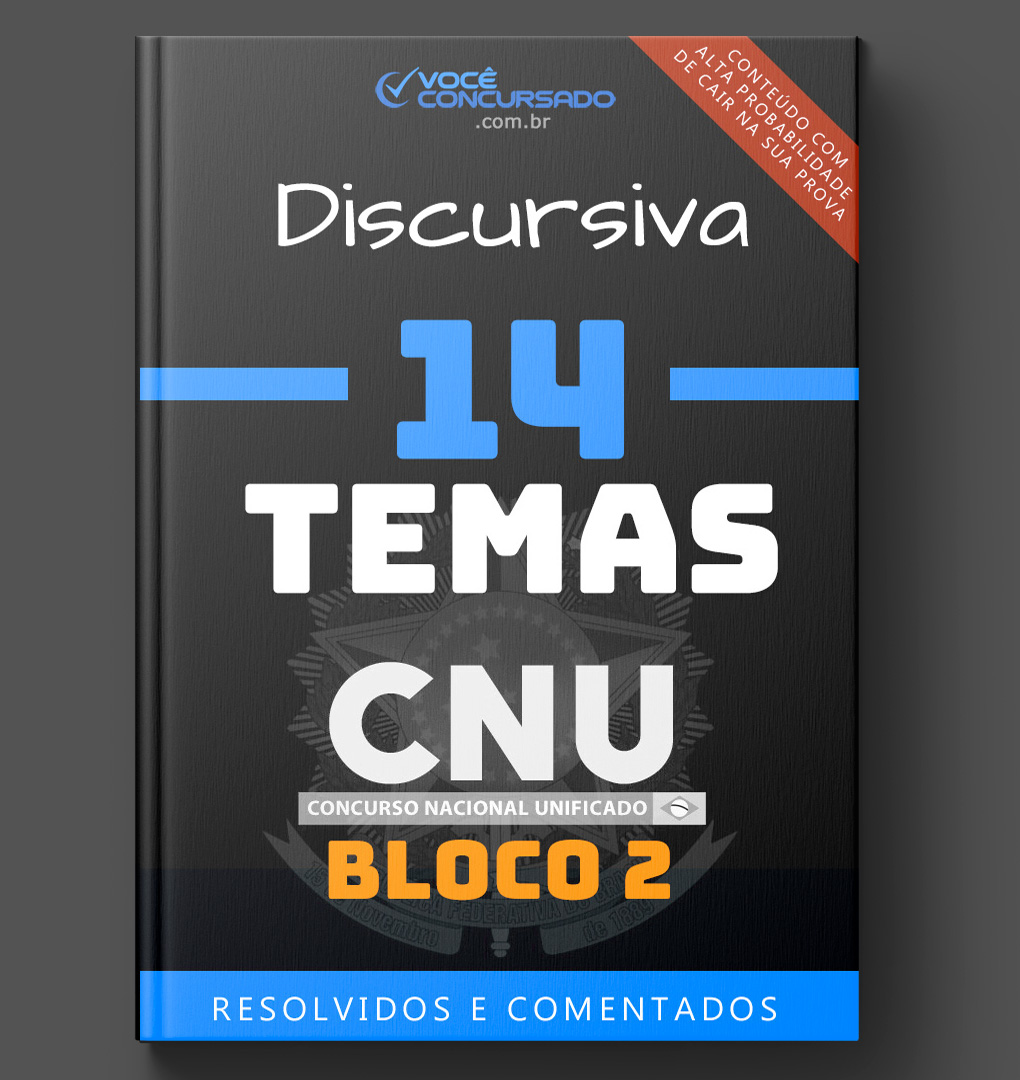 Livro Digital (E-book em PDF) com 14 temas de discursivas, inéditos ou adaptados, elaborados de acordo com os critérios de avaliação da banca Cesgranrio, conforme edital 2024 do Concurso Nacional Unificado (CNU).